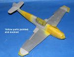 First job on this was to paint the spinner, entire nose, fuselage band and lower wing tips in white using Floquil Reefer White. Then I set aside the spinner and used Agama's RLM 04 yellow to paint over the areas that had been done in white. It is important that translucent colors like red, yellow and orange have a white backing.