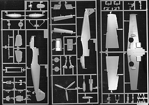 Though the kit would have you not use them, you can make a jabo from this kit by installing the bomb rack and bomb. You also get the optional pointed spinner to use and a tropical filter for the supercharger intake.