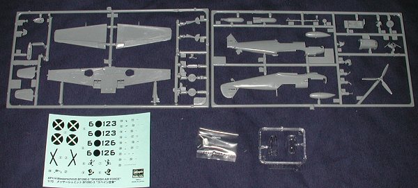 The instructions are quite good as you'd expect from Hasegawa giving Gunze paint references. Those RLM numbers needed are also given. The decals are for two very similar Condor Legion aircraft. Painting instructions would have you use RLM 02 over RLM 65 for the colors. While the RLM 65 is correct for the underside, RLM 63 would be more appropriate for the upper color. If you don't have any RLM 63, then some slightly lightened RLM 02 would be an appropriate substitute as the colors are very close. Both have the area that would be dirty from the exhaust painted in black so some masking skill will be needed for this one. Wing tips and rudder are to be painted white.