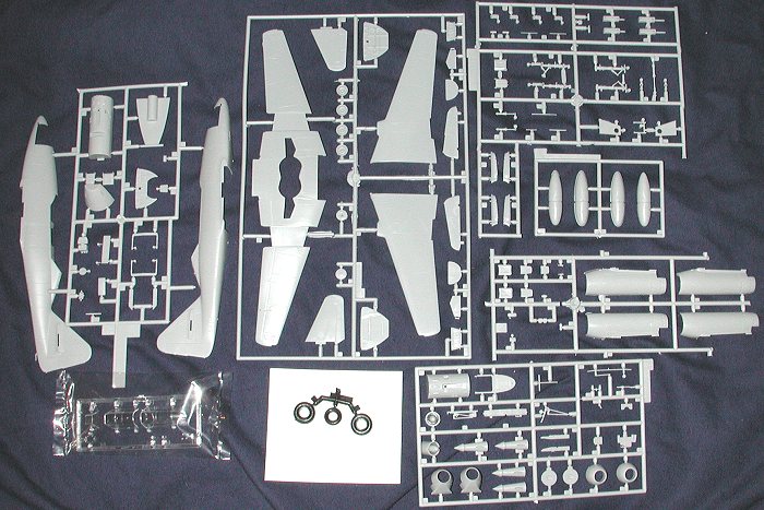 As most of you know, DML basically took the Trimaster molds and recast the metal landing gear and wheels in plastic, leaving the etched frets as they were. This not only brought down the price, but eliminated, what to me, is an unnecessary addition to the kit. Metal gear should be limited to those kits that need the extra strength. What was not redone were the rubber tires and you get those in this kit. They don't seem to be the plastic-eating variety as mine were loose in with sprues of plastic with no ill effects.
