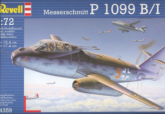 When the Me-262 was being designed, there were a number of alternatives proposed all relying on the basic Me-262 airframe. Neither one of them went much beyond the paper planning stages as better designs were developed. The 1099A was to be an all weather fighter while the 1099B was to be a three-seat destroyer aircraft. Revell Germany released two kits, the P.1099 in 1996 and the P.1099B/I in 1998. These are heavy fighters with the Me-262A's wings and tail section but with greatly enlarged fuselages.
