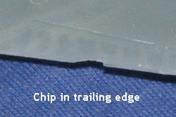 During this, I guess I knocked a chip out of an aileron. Looks nasty,