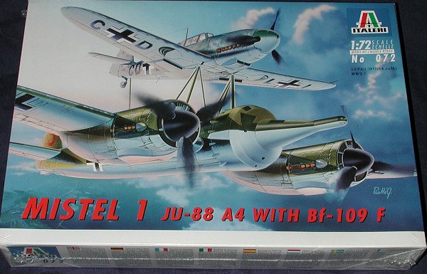 Instructions are very good, as one expects from Italeri. Clear construction and painting steps with colors given in generic terms as well as Model Master colors. The decal sheet is well printed and offers markings for one Bf-109 and three lower sections. Actually, the only difference in the lower section is the number. Colors for the two are quite normal with the 109 in RLM 74/75/76 and the Ju-88 in RLM 70/71/65. Thanks to the new book out on the Mistel by Classic publications, you can do some research and come up with something a bit different, though much of it will be simply code and number changes. To my knowledge, no unit markings were used on Mistel 1s.