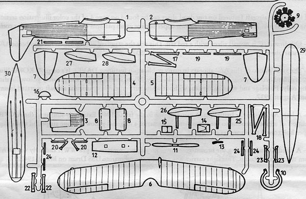 You get a fairly nice engine with a cowling that is split into upper and lower sections. An exhaust collector fits to the back of the engine. There are a lot of struts with the ones that attach to the float being separate. The outer wing float half has struts molded to it and the inner ones will need to be attached separately. Both N struts are a single piece with the interplane struts being in sections. Control rods between the upper and lower wing are included.