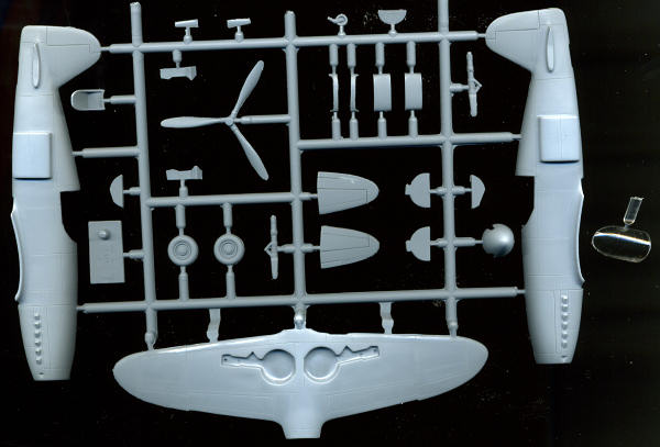 struts), as well as a one piece prop and wheels. There are fore and aft pieces