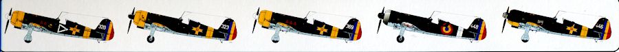 bare metal forward cowling. The fifth is from Escadrilla 67, Grupul 2 with