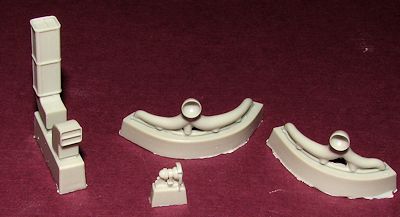 are on the larger pieces. The kit comes of five grey plastic sprues with a clear