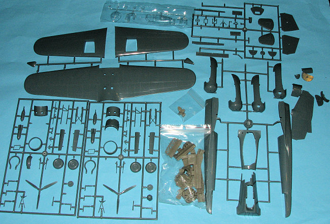 I don't remember if it is Sword or MPM who now makes kits for CA, but it really doesn't matter as both are a known quality. You get a large zip bag in which all the sprues and two other smaller zip bags are located. Since the upper wing is a single piece, it is quite long and managed to tear a significant hole in my bag. From this spilled a number of parts that had worked their way from the trees during shipping as they rubbed and jostled against each other. As the box was not sealed in any way, I'm surprised that nothing seems to have been lost. However, there are quite a few scratches on the surface of various parts. Most will disappear under light sanding and a coat of paint, though some will need filler.