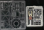 The interior is made up of a resin floor with etched metal framework and detail parts in both pe and resin. Very much in the manner of the Mirage PZLs. A very nice touch is a photograph of the completed, but yet unpainted interior. This allows you to see where the interior fits and what it should look like when it is all together. A nice surprise is that one of the Eduard P.E. frets is in color!
