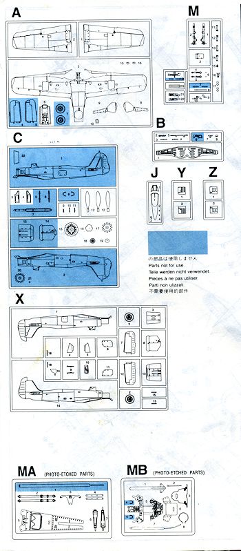 There are some neat unused options on the sprues for this one including a set of longer fuselage halves, upper cowling and other bits, however, since I bought this one 'used', the previous owner had already removed many of the parts from the sprues and that includes any of the unneeded bits. A bomb rack is also included. Not included is any sort of drop tank, which I thought was pretty standard stuff.
