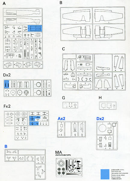 Molding on Dragon/Cyber-hobby kits is among the best in the industry, with crisply done engraved detailing. There is no sign of flash or other molding glitches on this one, this despite several of the more common sprues having many thousands of pressings. As the kit is part of a much larger series of Ju-88s, it is not surprising that there are a goodly number of bits and pieces, thanks to the modular construction of the kit.
