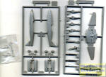 two grey and one clear sprue in a small box. The clear sprue contains two