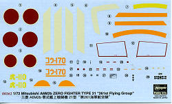 This particular boxing is for a very colorful plane from the 261st Flying Group. Though the unit, formed in mid 1943, primarily flew the A6M5, there were a number of earlier versions assigned, as much to replace losses as anything. The unit fought at Pelileu and later in the Borneo theater, guarding the refineries at Palembang.
