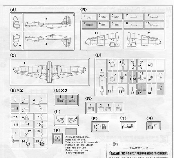 Instructions are well done with the usual Gunze paint references. Two markings options are provided that differ only by tail markings and the denseness of the mottling. Colors shown are overall grey-green with Kawasaki green mottling. The leading edge ID markings are provided as decals, which should help most. Decals are well printed and should provide no surprises. They appear to be the newer type that work well with mild setting solutions.