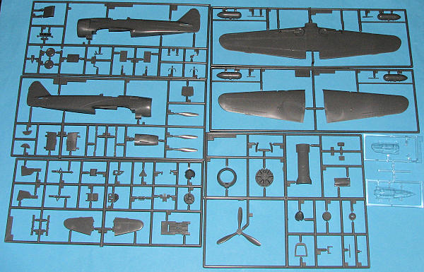 So, let me take another look a things. Seven sprues of which one is clear and offers both canopy types. The detailing is finely engraved and crisply executed. There are the usual ejector pin marks on the gear legs, wheels, inside of gear doors and so on. None impossible to fix, but we wish they weren't there to start. Nicely done cockpit with raised detailing on the instrument panel and a decal if you wish to go that route. Nicely done is the sidewall and the rest of the cockpit parts, needing only a shoulder harness to make for a perfectly acceptable cockpit. One of these days, kit makers will start including this item in all their kits.