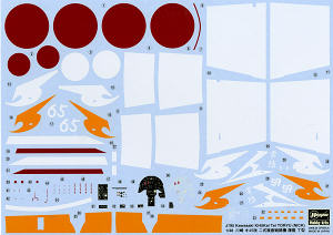 Instructions are standard Hasegawa in that they are well drawn and provide color information and small detail sections when needed. As usual, there is a lot of information provided so one has to be cautious not to miss anything. Markings are for two 53 Sentai and one 5 Sentai aircraft. One is the box art plane in the very nice, but difficult to paint variegated pattern. The other two are in overall Kawasaki dark green. All three have the broad wing 'bandages', while the two 53 Sentai aircraft have these on the fuselage. The decal sheet is superbly printed and of the 'new' variety with proper whites and reds. I'm not sure just how opaque the white bands are so would caution modelers that it might be wise to paint these on the variegated camo plane. Leading edge ID stripes are also provided, and again, one may wish to paint these on.