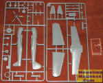 For the front of the aircraft there is an engine face through which a prop shaft is fitted. There is a plug section in the back of the engine face to keep the shaft in place. Wings already have holes drilled in the underside for the two drop tanks so if you don't want the tanks, you'll have to fill them. Wings are a single lower piece with the rather shallow main gear wells molded in place and two upper sections.