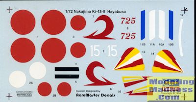 decals. These provide markings for four planes. Realize that all Japanese Ki-43s