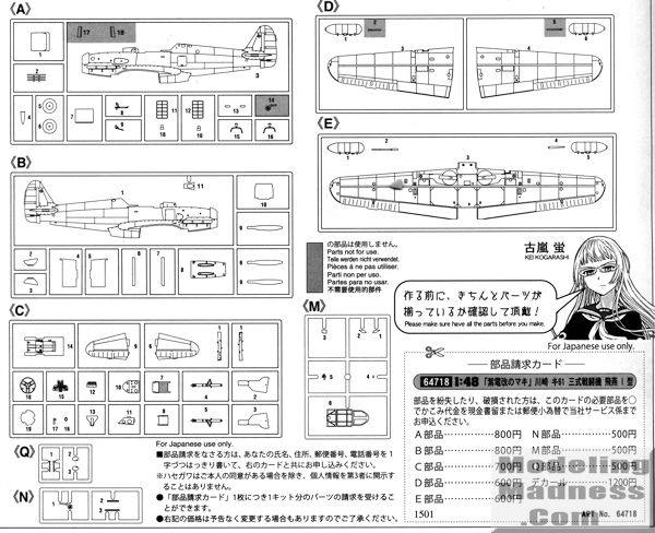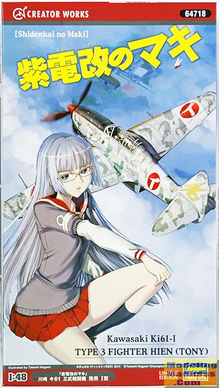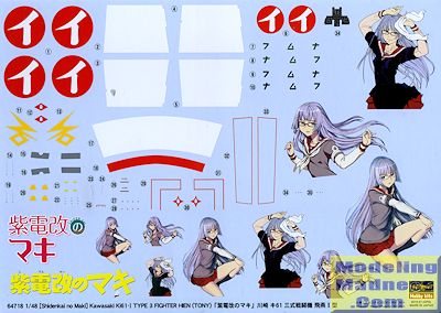 Those who know me know why I am attracted to things like this. Though it took me 50 years to catch on, I've become quite a fan of anime or manga related kits. I fully realize that not everyone is into this sort of thing, but kits like this offer another plus. Frequently popular kits such as Hasegawa's Ki-61 sell out very quickly. While the subject of the markings may not be to one's preference, it is still a Hein kit and at a very good price. Nothing that aftermarket decals won't take care of for the fan.