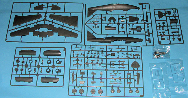 The kit's composed of five grey sprues, two clear ones and a metal nose gear bay. This latter item saves us from trying to figure out how to put in nose weight. A plastic one is also included if you want to use it, though I don't know why you would.