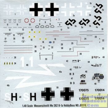 It is nice to see Hobby Boss include this in its run of Me-262 versions. It was a smart move on their part to do the whole series and while the older DML kits are nice, they have a reputation for being a bit fussy to build. My experience with Hobby Boss is that they are generally not like that. B model 262s were not widely photographed and those that were tended to be rather plain aircraft. We are sure to see aftermarket sheets for this kit in the near future if you are seeking something a bit different.