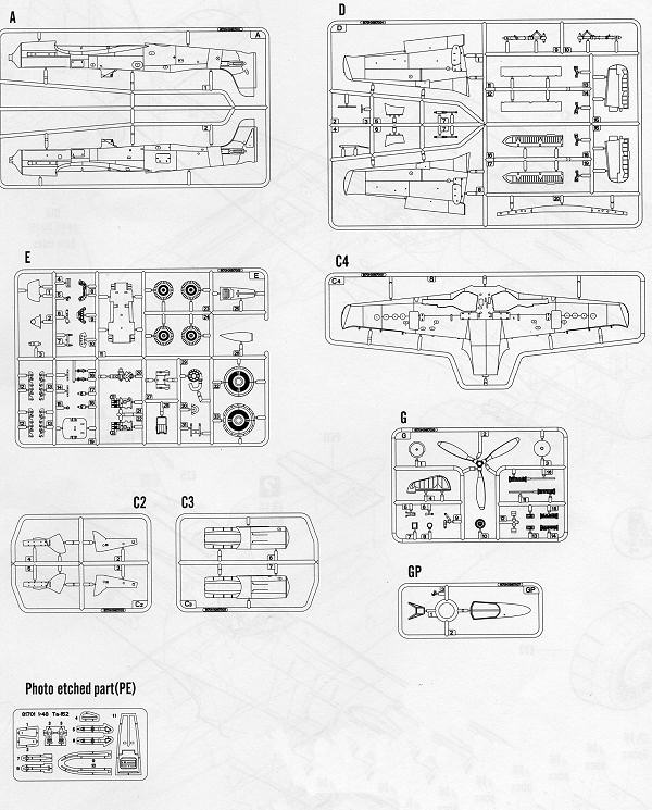 This kit includes an open accessory section that can be viewed through the wheel wells, just like on the real plane. There are two upper engine cowlings with the lone difference being the size of the bulge next to the supercharger intake. The C-1 version gets the larger of the two. Another option is to have open or closed cowl flaps.