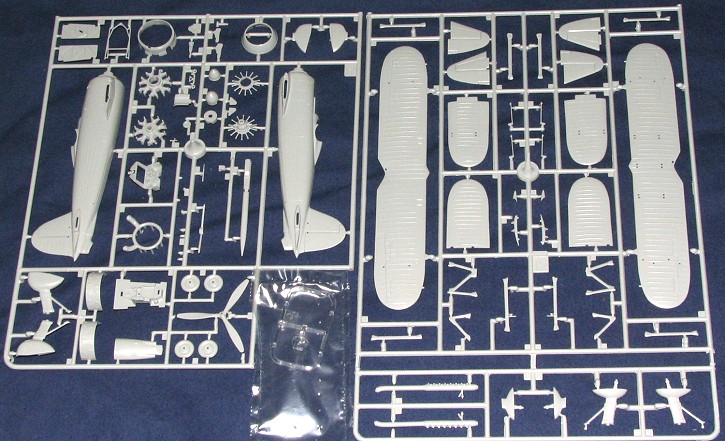 What one does find are two large sprues that fill a pretty good sized box. The only thing in a bag is the clear windscreen, this one having an indentation on the forward portion, probably for a telescopic sight, though one is not indicated. All the parts are molded in a nice grey plastic with the required engraved detailing. The interior is quite complete with a seat, instrument panel, rudder pedals, control stick and side panels, each with nice detailing. I found it interesting that the general color of the interior was given as light grey and not the Italian Interior Green I thought would be more appropriate for Italian aircraft. Both decals and raised detail panels are offered for instruments and a seatbelt decal is provided.
