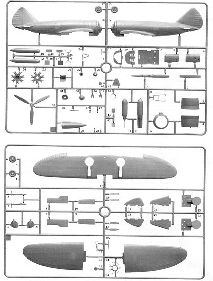 The kit itself is on two grey and one clear sprue. The clear one is for the canopy, windscreen and gun sight and is not shown in the parts diagram. The surface detailing is fairly good and up to modern standards, though not exceptional. This is a pretty simple aircraft in terms of construction.
