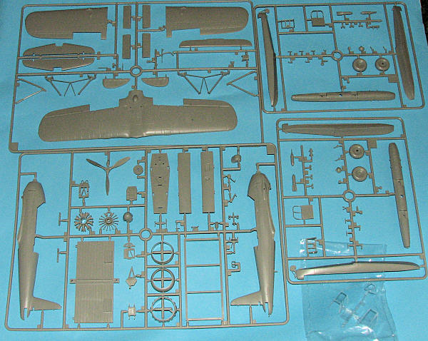 A well molded engine is part and parcel of the kit. Thankfully, Italeri has molded the valve clearance parts as one piece so we don't have to mate and sand a forward and aft section. One can remove a section of the center cowling ring to show off the engine if one wishes. It was somewhat normal to see these planes carrying small bombs and Italeri provides that option.