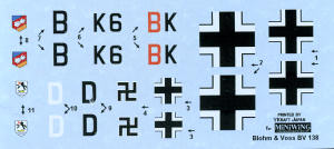 A total of 297 BV 138s were built between 1938 and 1943. The aircraft was unusually powered by three engines, with one mounted high above the centerline driving a four-blade propeller, and one on each wing driving three-blade propellers. The preproduction prototypes and the BV 138 A-01 to BV 138 A-06, were powered by various makes of engines ranging from 485-746 kW (650-1,000 hp). The first standardized version, BV 138 B-1, was powered by three 656 kW (880 hp) Junkers Jumo 205D Diesel engines. Unusual were the aircraft's twin boom tail unit, and gun turrets at the bow and the stern of the fuselage, as well as behind the central engine. These features together produced the aircraft's ungainly appearance.