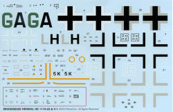 Typical Monogram instructions with large, well drawn construction steps that include color information. The decal sheet is superbly printed and includes markings for two planes. Both of these are in standard He-111 camo with additional colors added locally. The first is the box art plane from 1./KG 53 with RLM 76 splotches over the upper surfaces ad a wide yellow fuselage band. The other is from 1./KG 3 with a black-grey (RLM 66) underside and large areas of RLM 76 on the upper surfaces. Swastikas are included so no need to raid the spares bin.
