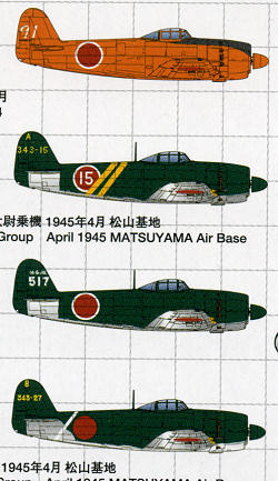 Aside from the orange prototype, these are in Kawanishi Navy Green over unpainted metal with yellow leading edge ID stripes. After the prototype, there is a 301 Squadron/343 Flying Group plane with nice yellow fuselage bands. This is followed by a Kawanishi factory plane and then a 407 Squadron/343 Flying Group aircraft, this time with a simple white rear fuselage stripe. From the Yokosuka Naval Flying Group comes the fifth markings option, with the final choice being a 407 Fighter Squadron/343 Glying group aircraft, also with a white fuselage stripe. Decals (not shown) are well printed and typical of Platz, you get enough insignia and data markings for three aircraft even though only two are provided in the box.