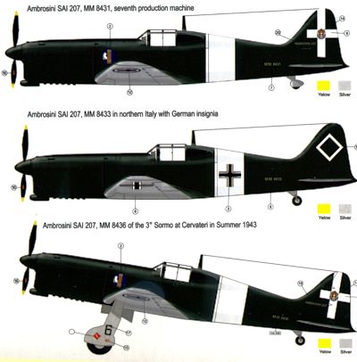 Two more fighter prototypes were built as SAI.207s, flying for the first time in the Spring of 1941 and 1942.