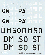 Instructions are quite good, showing the various construction steps and the colors needed. Additional detail drawings are given where they are needed to assist with alignment. Markings are provided for four very similar aircraft; differing only by code letters. These are all RLM 71 over RLM 65 or overall RLM 02 with RLM 02 used for all the external bracings. Decals look to be well done with the usual split swastika so that some won't go on a rampage from seeing the complete symbol.