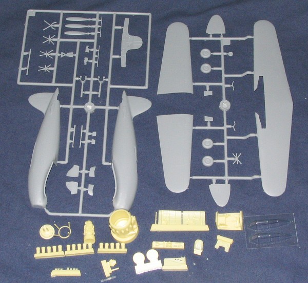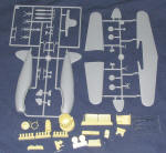 As you might expect, the really difficult to mold and finer pieces are all done in resin. This is superbly molded and probably the only bit that will take some caution in excising from the sprue stub will be the cowling. A rather complex engine bearer assembly is a combination of resin and injected parts and the engine must be built up from a separate crankcase and cylinders. No pushrods or valve cover detail is provided as the latter will not be seen anyway. The nicely done resin cockpit consists of a tub with the rudder pedals already molded in place, control stick, seat with belts and side panels. No fussy little resin control boxes or throttle quadrants to glue in place on this one.