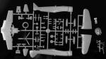 There is one large sprue for the injected parts with resin being used for the engine and the seat. A nice clear sprue includes landing light cover canopy and two windscreens as well as a gun sight. The plastic is very well done with only a tad bit of flash. The interior is quite well done. There is sidewall detail on the inside of the fuselage halves and on the floor. Separate instrument panel, gun butts, control stick and rudder pedals are included. A nice set of belts would have been nice, but you can find these in the Eduard line. The tail wheel cavity also has frame detail and there is an additional frame on which the strut attaches.