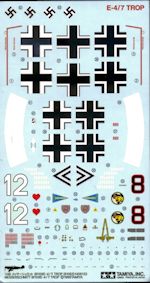 The decal sheet includes markings for three aircraft. first is the yellow nose box art aircraft from 7./JG 26 in RLM 74/75/76. The aircraft has a white fuselage band (supplied as a decal). Next is the tropical version in RLM 78/79/80 with a white fuselage band and a red/white spinner. This desert scheme plane has been heavily photographed during the war and I'm sure you have seen images of it flying low over the scrub. The last one is Hemut Wick's plane with JG2. It is in RLM 7/02/65 with a yellow nose and lower rudder.