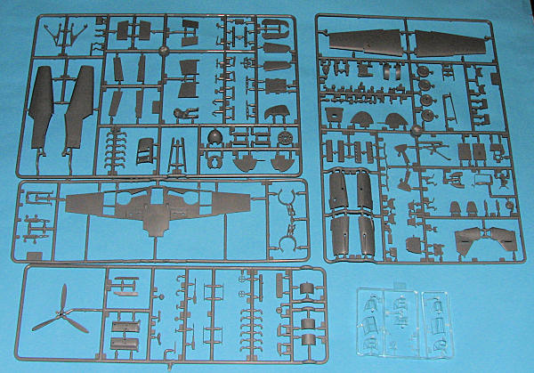 Moving along, the wheel wells are separate bits made up of several pieces that fit into the wings. There are even two different styles of wing tips, one with larger light lenses than the other. On the underside, there are different lower wing inserts and vent sections for just behind the engine. Of course, ailerons, flaps and slats are separate pieces, as are the rudder and elevators. Even the radiator openings have separate 'lips'. Two separate engine cowlings are also provided, but for the life of me, they look the same. It seems that one is for the 'in flight' version with the cowling closed. Several different windscreens are provided depending on the markings option chosen.