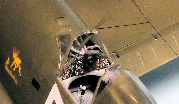 With such a large scale to work with, one will not be surprised that there is a ton of detail. The cockpit has a lot of this with the various framework pieces, a very well done seat, floor, armor plating, trim wheels and instrument panels. Decals are provided for instruments. There is also quite a bit of sidewall detail with various control levers and knobs. I found it interesting that the interior color for this aircraft is a light blue grey rather than some sort of greenish shade. This color is also used in wheel wells and inside of gear doors.