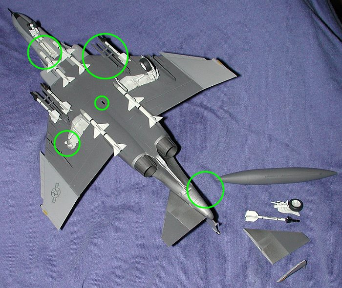 I have heard it and said it a number of times in my modeling experience. It can mean major disaster or a minor goof, but if you have moved as much as I have, it usually is the result of looking at a kit that has shed some parts. In this case, a Fujimi 1/72 F-4E, the kit has shed a nose gear door, sidewinder, drop tank, right main landing gear and left stabilizer. Getting old friends like this back together is something that most of us want to do rather than chuck it in the trash. Sure, it will no longer be a contest winner, but it belongs on the shelf with its buddies.