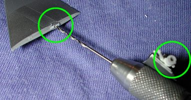 It is then simply a matter of snipping off the excess, putting a drop of glue on it and then inserting it into the hole you have drilled in the airframe. A touch of accelerator to speed up the drying process and you are done.