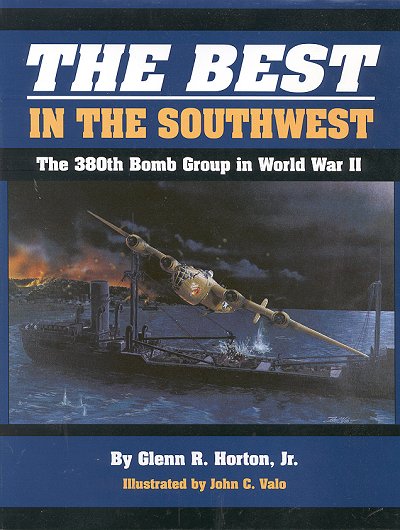 'The Best in the Southwest' is a unit history. Specifically the history of the 380th Bomb Group. It covers the history of the unit from November 1942 until the end of the war. Initial equipment was the B-24D and unlike Europe, most of their planes were modified prior to deploying overseas. This consisted mostly of installation of a turret in the nose, this modification being carried out at either Hawaii or Oklahoma City. An additional modification was made by deleting the lower ball turret on those planes so equipped and installing a scarf ring with twin 50 caliber machine guns. The relatively low level of bombing and the general lack of aggressiveness of defending Japanese fighters compared to what was met in Europe made this a logical modification.