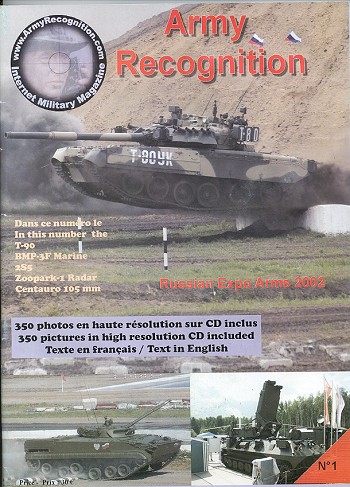 This premiere edition seems to concentrate on Russian vehicles as shown at Russian Arms Expo 2002. Much of the material on the CD also concentrates on this event. The vehicles covered in the magazine are the T-90 main battle tank, the BMP-3F armored fighting vehicle, the 2S5 self propelled gun, Zoopark 1 light armored vehicle with artillery radar, and the lone non-Russian vehicle, the Centauro 105mm anti-tank vehicle from Italy.