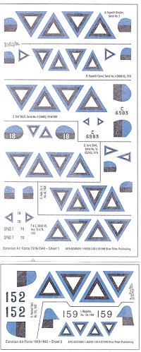 In addition to the great book, are 1 1/3 sheets of decals. These are shown with the wax sheet still covering them so they appear a bit faded but are not at all. If you have the 1988 sheet on the Estonian AF, you will be pleased to know that none of those subjects is repeated on these sheets.