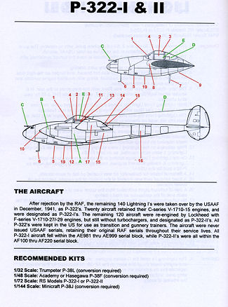 This is, as the title suggests, a modeler's guide. Modelers want to know what bits and pieces are applicable to which variants and what the serial number runs are on the different versions. This book provides that. It covers all 26 different variants of the P-38, using drawings of each aircraft type and then providing information on what bits apply. This allows you to properly portray the aircraft you are building.