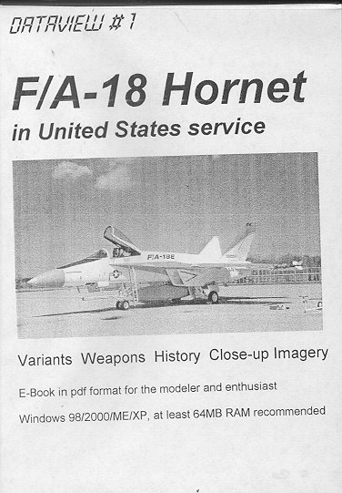 This is the first one in the 'Datafile' series and is on the F-18 Hornet in US Service. The e-book is in Adobe format and if you don't have the program, it can be downloaded for free from Adobe. The CD will not work on Windows 95 or older systems. Basically it is divided into an introduction on the development of the aircraft, then each of the major versions, a section on ordnance and finally a rather extensive bibliography.