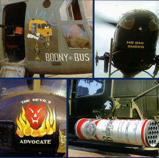 The author went through thousands of images drawn from thousands of inputs, much of it from the men flying, maintaining, or painting the aircraft in the photo. Dividing the book by aircraft type, we see what was applied to all the helos that fought in Vietnam, which includes the AH-1 Cobra, H-21, H-47, H-54, OH-6 Loach as well as the UH-1 gunship and the more standard UH-1 Huey. Medevac and dustoff types are covered as well. In fact, the only type not included is the H-58, but perhaps that is because it wasn't in combat enough to be decorated. There is also a section of the work that has been saved, most of it by the artists, and darn little of it at that.