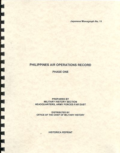 Japanese Monograph #11: Philippines Air Operations, Phase One |