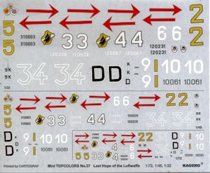 1944,To modelers, a highlight of the book is a superbly printed decal sheet that offers the unique markings for each subject in 1/72, 1/48 and 1/32 scales. Fortunately for us all, at this time in the hobby's development, there are quality kits of nearly all these planes available. The sheet itself is printed by Cartograf so you know that you are getting one of the best around.