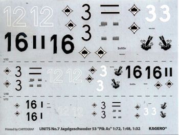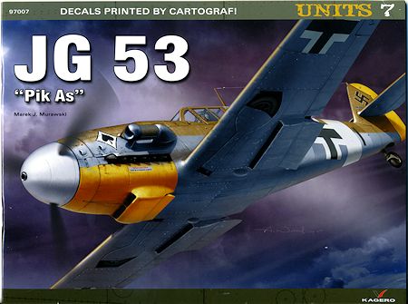 The latest in Kagero's 'Units' series is this one on JG 53 'Pik As' (ace of spades). Formed prior to the start of hostilities as I./ and II./JG 133, flying the Bf-109E-1 and E-3, they were redesignated in May of 1939 as I./ and II./ JG 53. The unit spent the 'Phoney War' on the western front and managed to build up a small score of French and British types. When the shooting started in earnest, JG.53's tally really started to climb with the star pilot being Werner Molders. He was shot down in the last days of the campaign and taken prisoner but soon released.